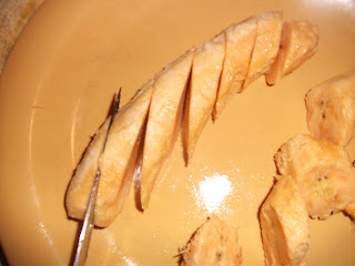 So after talking the ears off of MsJaMayka (hey girl!!!) she gave me tons of tips on how to cook some good, authentic Jamaican fried plantains!!! I owe you one girl cause I was ready to throw these things in some batter first LOLLL!